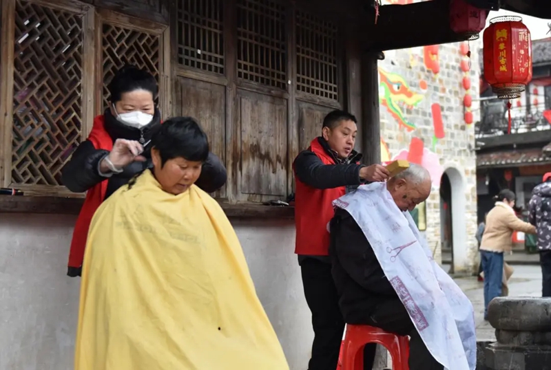 (老街“新风集市”志愿者理发师免费服务)