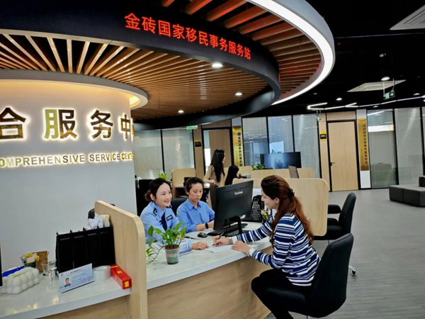 在金砖国家科创孵化园服务站,厦门市公安局出入境管理支队民警耐心解答签证问题。