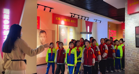 “在我身后的这面墙上,挂着的都是承载着岁月沧桑与坚定信仰的老党员们的影像。这些照片,如同一部部生动的历史教科书,讲述着他们为党的事业奋斗终身的感人故事。”讲解员向参加书院研学活动的孩子们介绍着。