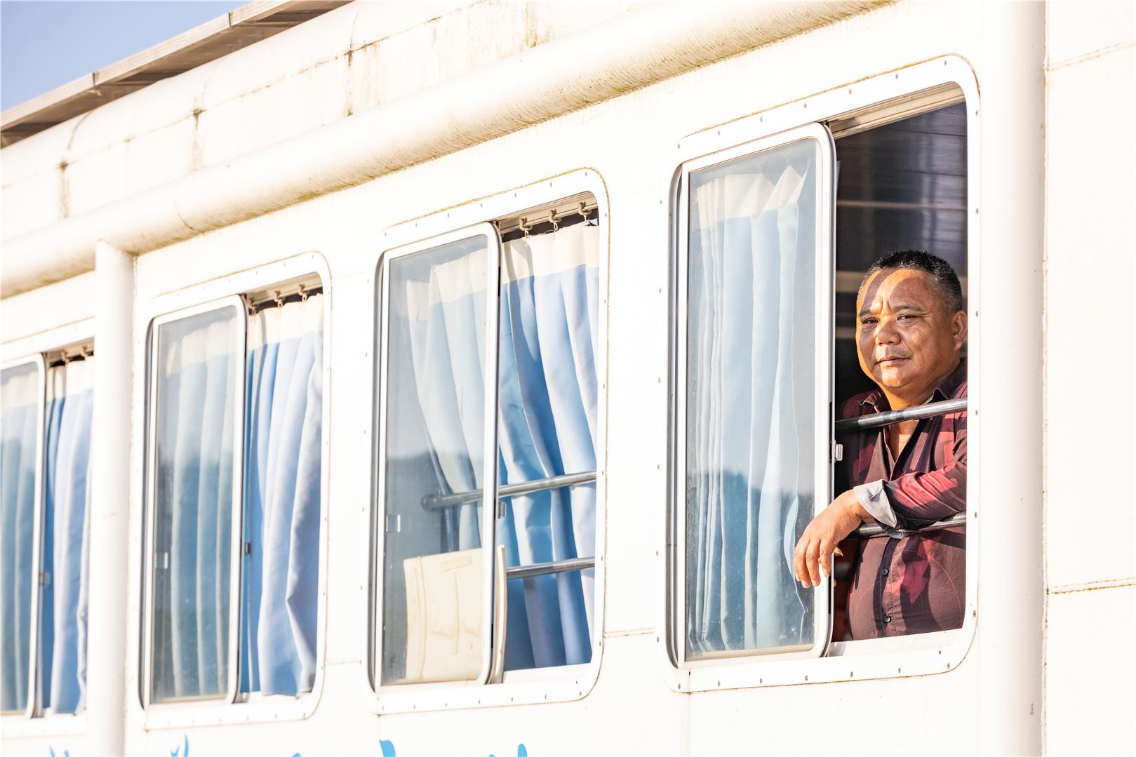 多年的船员生涯,让易中荣的皮肤变得黝黑粗糙,但他的内心却始终明亮而炽热。他坚守着自己的岗位,守护着每一位乘客的安全,践行着自己的信念:只要每一个进出中坝岛的人都能平平安安,就是他最大的成就和幸福。