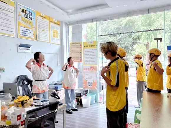 “夏日防暑大作战”结合趣味科普与互动游戏,普及防暑知识、传授防护技能,切实提升骑手高温作业应对能力。活动中,街道新时代文明实践所在美团驿站设立“文明互助补给站”,骑手可免费领取清凉饮品、防暑药品。