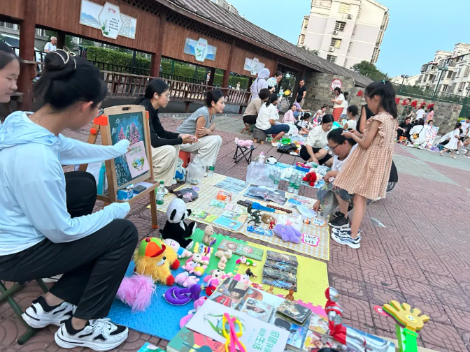 闲“愉”市集里,孩子们化身“小掌柜”,抱着闲置的玩具、书籍坐在摊位后,稚嫩的吆喝声此起彼伏:“这本绘本特别好看,只要5块钱!”“这个机器人能唱歌,10块钱带回家!”居民张女士带着女儿来义卖,母女俩把收入全部存入社区基金账户:“孩子的玩具堆成山,扔了可惜,能帮到社区公益,特别有意义。”截至目前,已有40余户家庭参与市集,社区基金用这些钱为困难居民购置生活用品,购置积分兑换礼品,为社区活动添置物资,让爱心在邻里间流转。