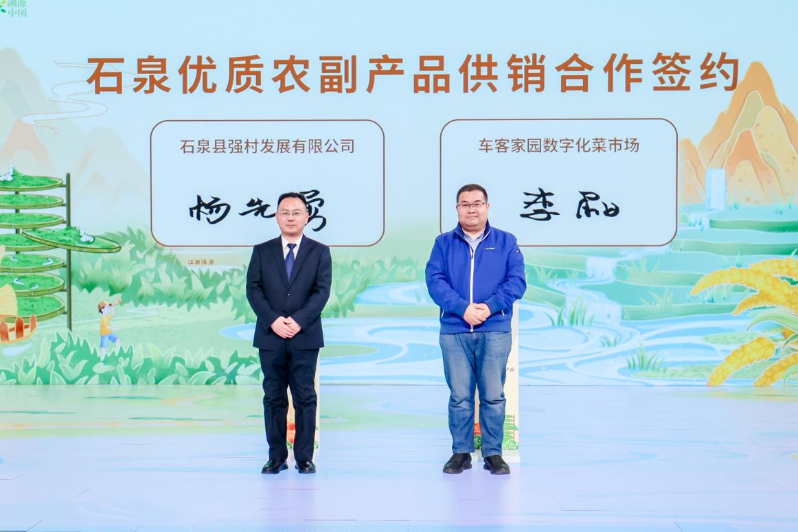 值得一提的是,现场,石泉县强村发展有限公司与车客家园数字化菜市场双方就石泉优质农副产品供销达成合作签约;陕西石泉食美小碗菜餐饮管理有限公司与禾沺悦色(北京)科技有限公司就石泉食美”小碗菜项目达成合作签约。