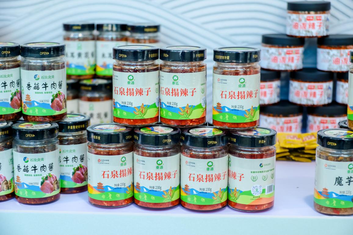 在石泉名品发布环节,陕西天成丝业、陕西金州农业、安康正兴有机绿色食品、陕西十全鸣扬生物科技、石泉县龙泉茶叶、安康越航农旅、秦岭健康医药等企业竞相发布各自“拳头”产品。涵盖了丝绸、酱料、黄花菜、鸡蛋、柚子茶、黄精、艾草等近百种特色产品。
