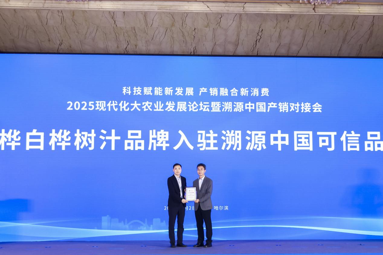 新华网哈尔滨8月2日电(赵海军)“2025现代化大农业发展论坛暨溯源中国产销对接会”8月2日在哈尔滨太阳岛举行。会上,伊春嘉桦生物科技有限公司(以下简称“嘉桦生物”)总工程师张宏明带来“从生态龙江到健康未来 引领白桦树汁产业新赛道”主题推介,深入解读企业在白桦树汁领域的技术突破与产业布局。同时,嘉桦生物成功入驻“溯源中国可信品牌”,其全产业链创新成果引发广泛关注。