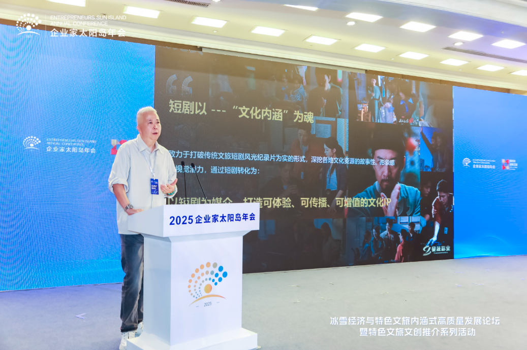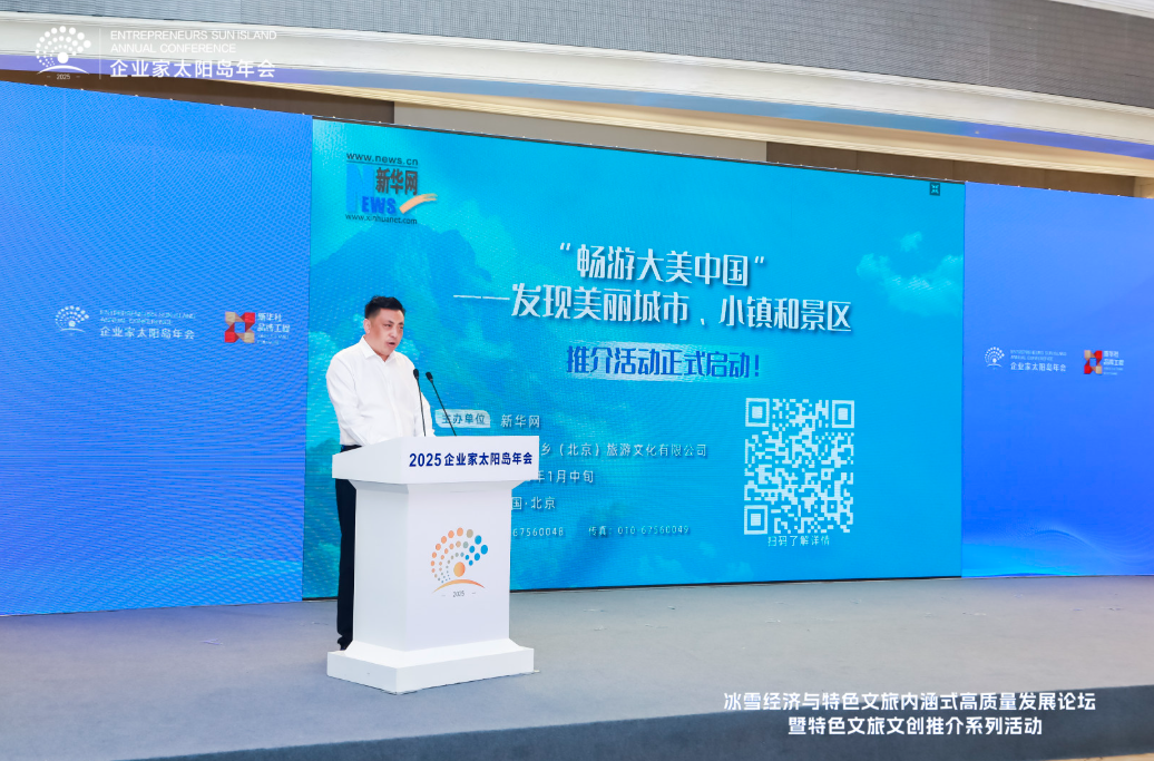 8月2日,2025太阳岛企业家年会“冰雪赋能发展 文旅创引未来”冰雪经济与特色文旅内涵式高质量发展论坛在哈尔滨举行。图为美丽城乡(北京)旅游文化有限公司总经理刘浩演讲