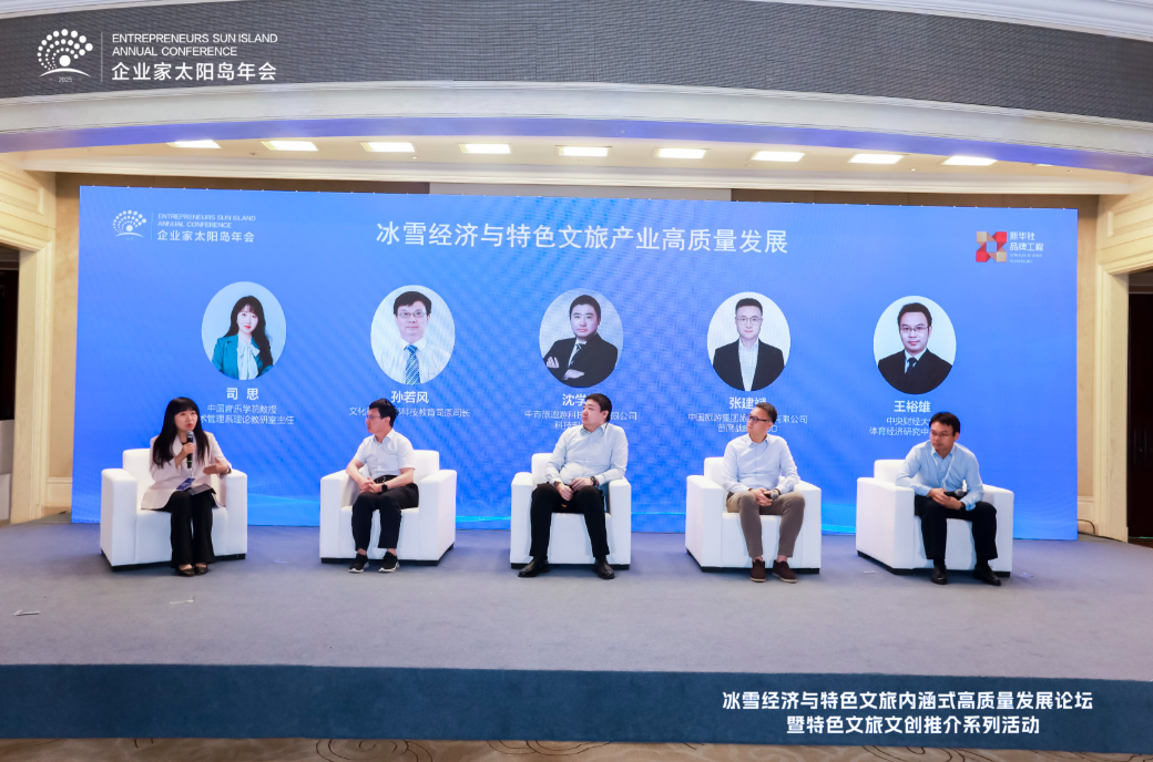 8月2日,2025太阳岛企业家年会“冰雪赋能发展 文旅创引未来”冰雪经济与特色文旅内涵式高质量发展论坛在哈尔滨举行。图为冰雪经济与特色文旅产业高质量发展高峰对话