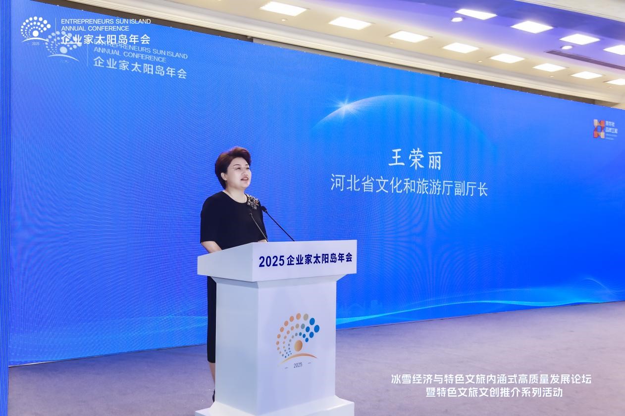 8月2日,2025太阳岛企业家年会“冰雪赋能发展 文旅创引未来”冰雪经济与特色文旅内涵式高质量发展论坛在哈尔滨举行。图为河北省文化和旅游厅副厅长王荣丽发表主旨演讲