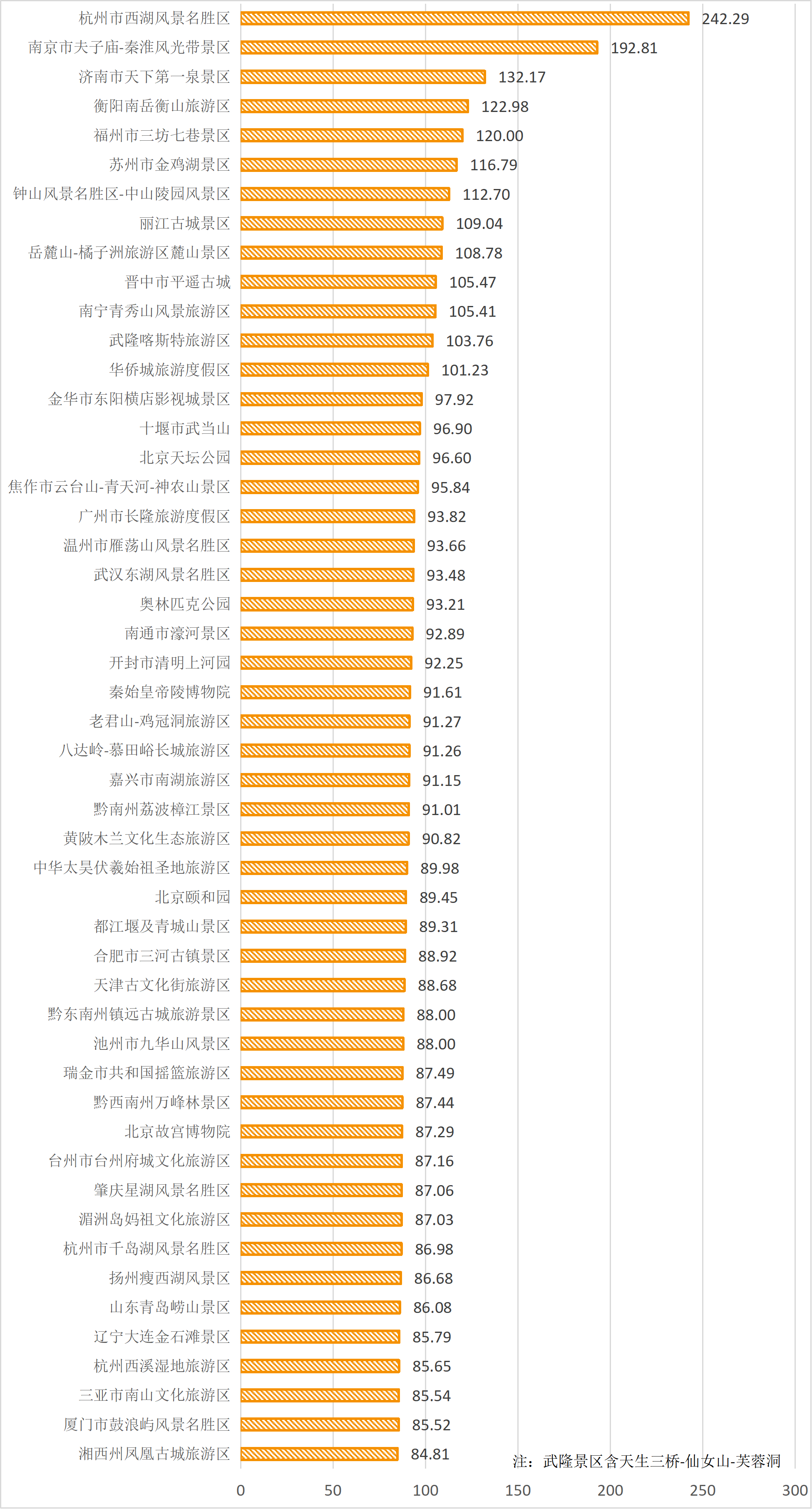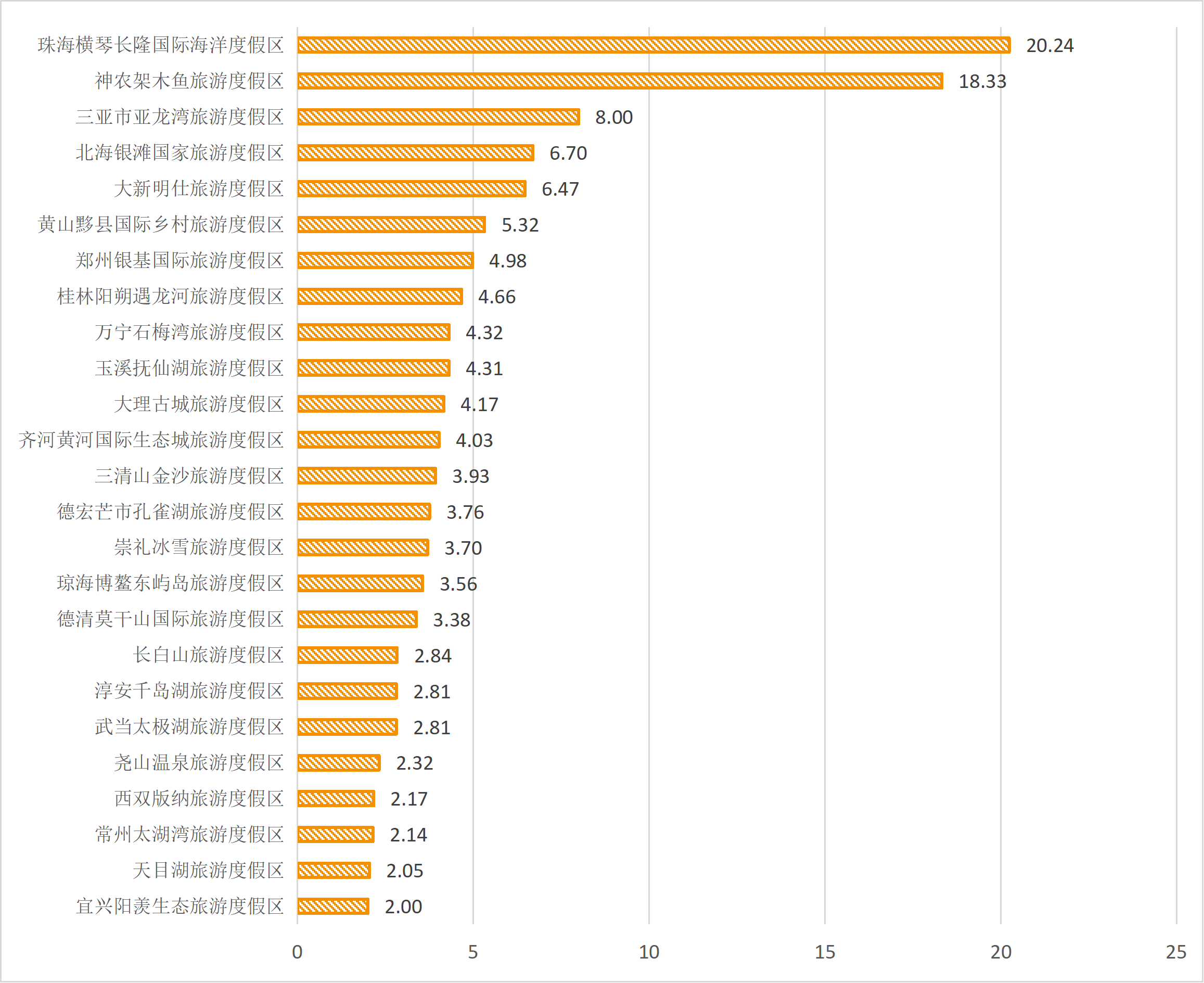 图为春节假期国家级旅游度假区接待游客量TOP20