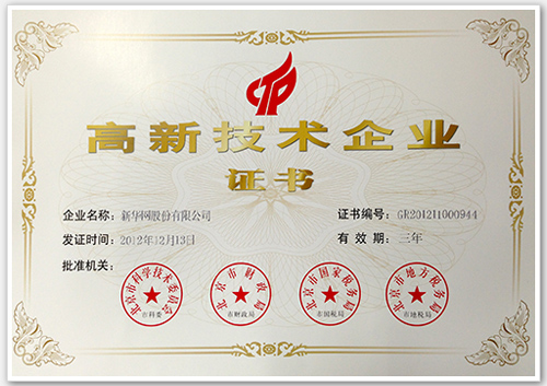 新華網獲頒國家高新技術企業證書,成為首家獲得高新技術企業認定的中央重點新聞網站。
