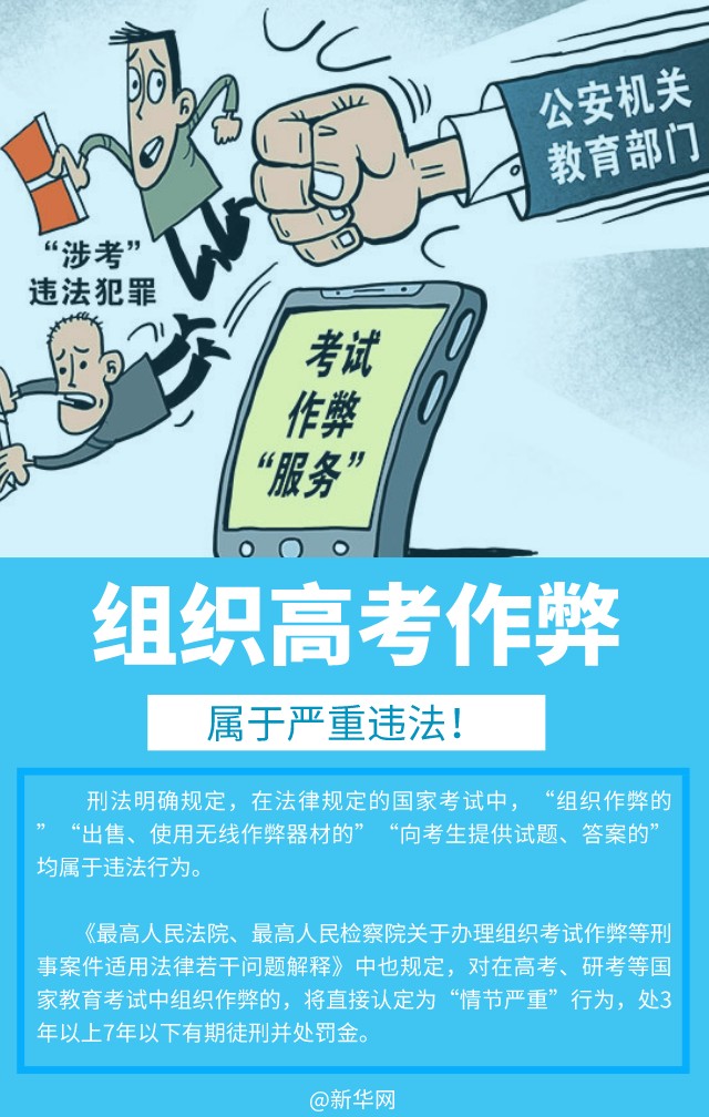 2022年高考即將到來,有些不良機構或不法分子妄圖借高考之機牟取不法利益。近年來,各地公安機關會同教育部門,對各類涉考違法犯罪活動持續保持高壓嚴打態勢,本期法治課代表提醒廣大考生和家長要增強法律意識,誠信考試,切勿心存僥幸。
