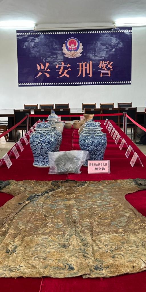 桂林警方在本案中追繳的部分文物(2023年5月13日攝)。新華社記者翟翔 攝