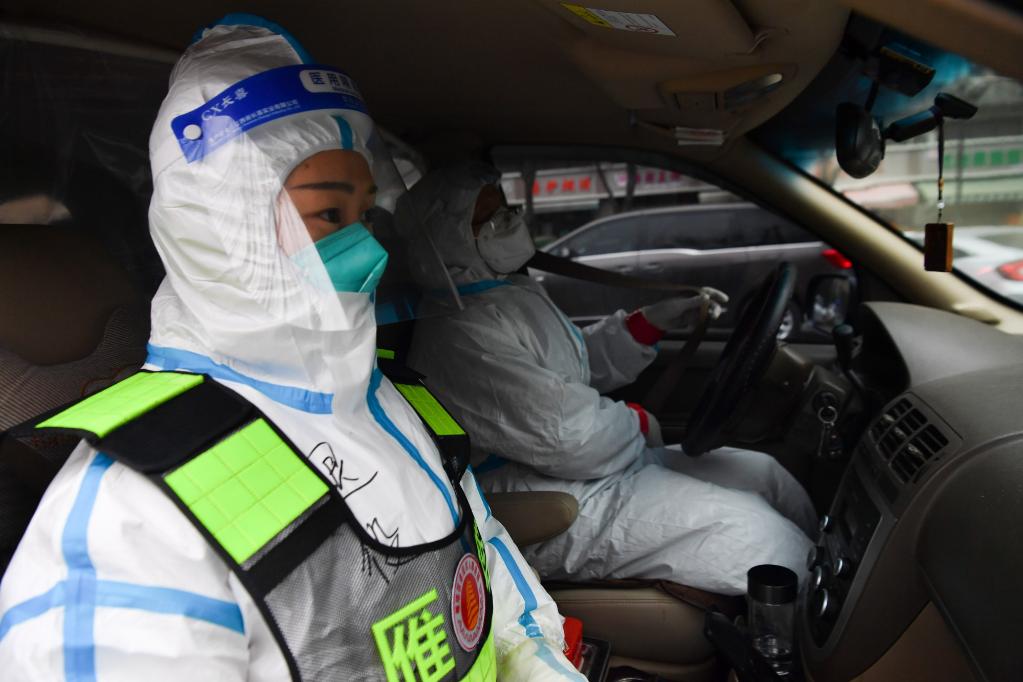 1月7日,西安市雁塔區退役軍人志愿突擊隊隊員位娜娜(左)準備出發轉運核酸檢測樣本。新華社記者 張博文 攝