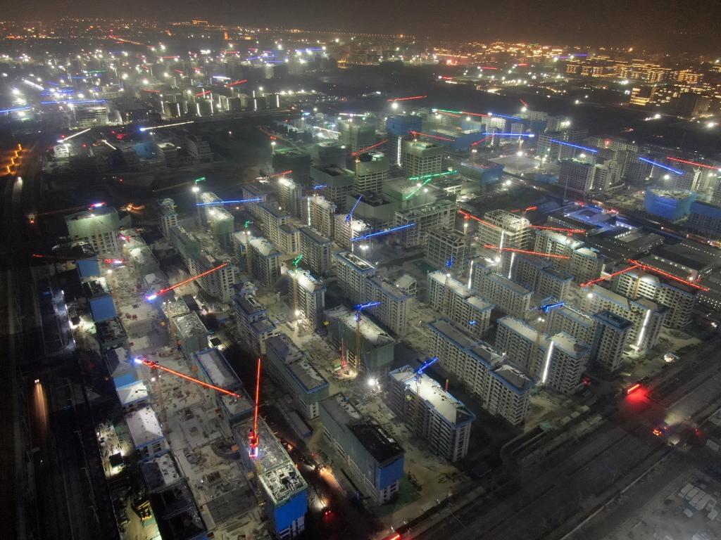 這是1月4日拍攝的雄安新區容東片區正在建設中的華望城項目夜景(無人機照片)。新華社記者 駱學峰 攝