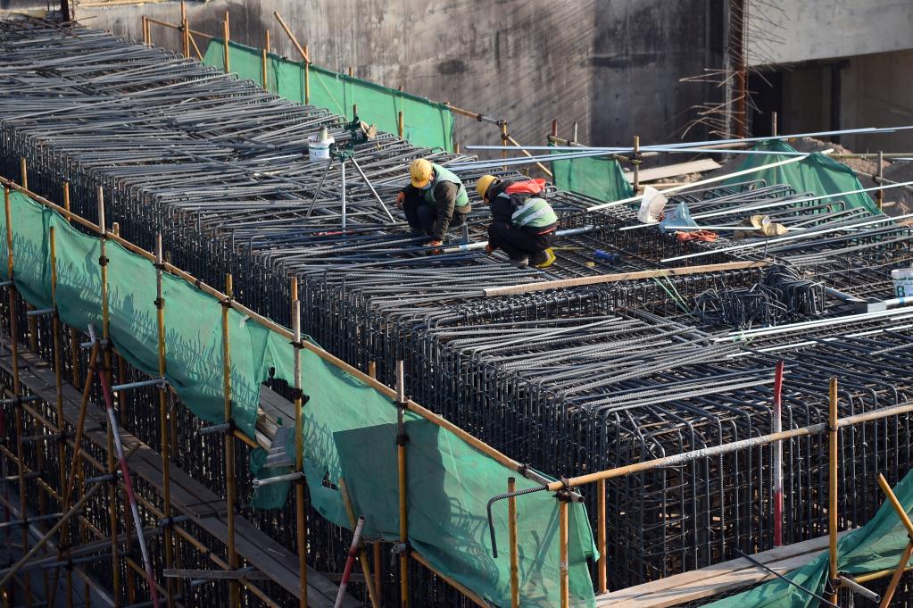 1月5日,工人在雄安新區首都醫科大學宣武醫院雄安院區項目工地施工。新華社記者 駱學峰 攝