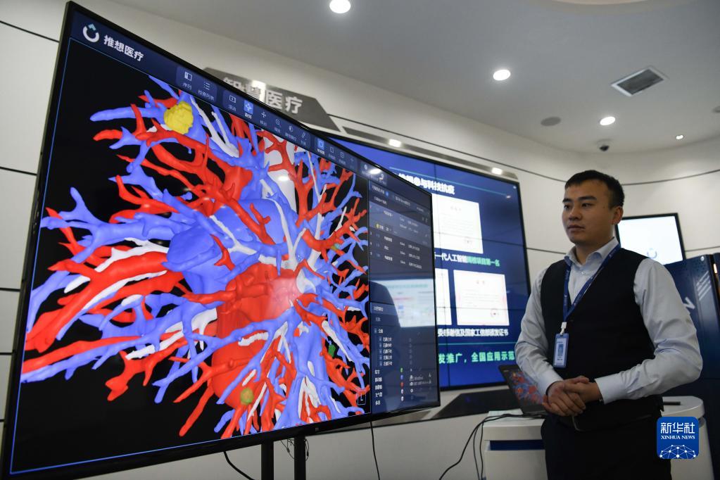 2021年12月24日,工作人員在位于安徽省合肥市西郊的中國聲谷體驗中心內介紹一款智慧醫療產品。新華社記者 張端 攝