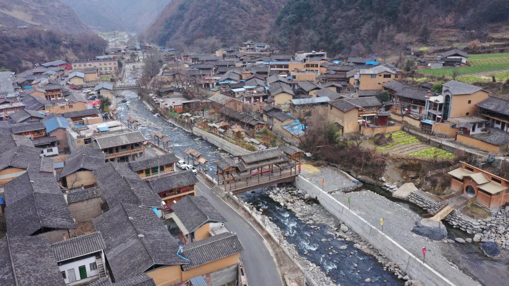 這是1月12日拍攝的隴南市文縣鐵樓藏族鄉(xiāng)草河壩村(無人機照片)。新華社記者 郎兵兵 攝
