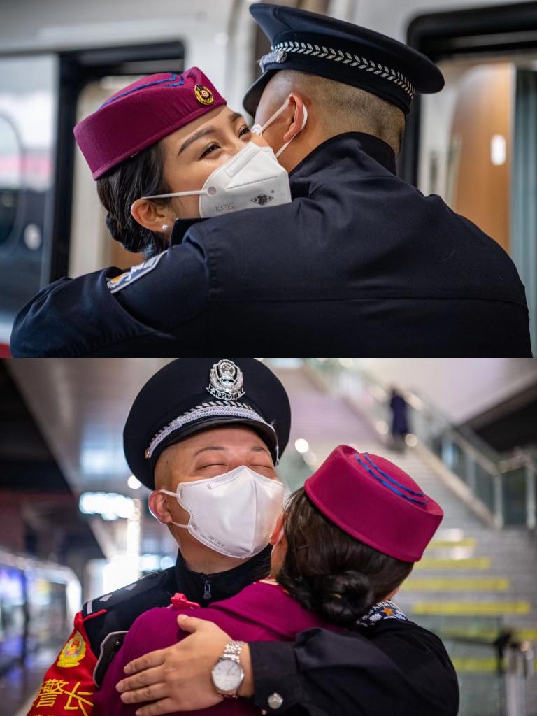 “像今天這樣能夠在待乘室見上一面,已經很幸福了。有時我值勤的列車剛好到終點站,周幸就帶著乘務箱準備值乘任務。”祁悅說,今年春運,他們只有8天是在一起的。