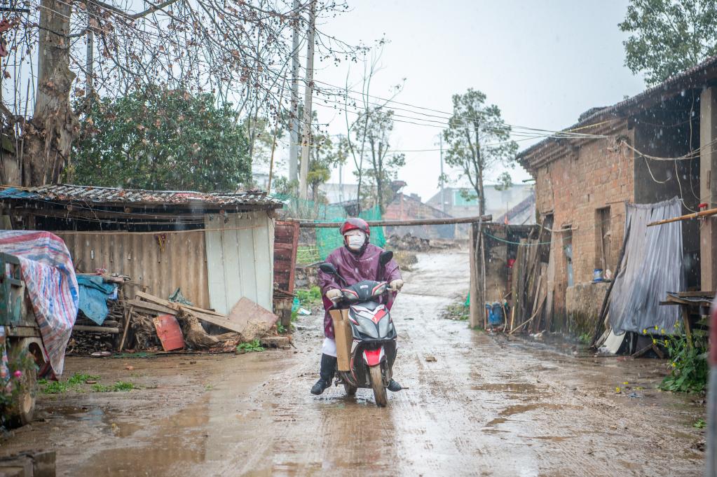 丁玉強騎摩托車到村民家中進行健康檢查。新華社記者伍志尊 攝