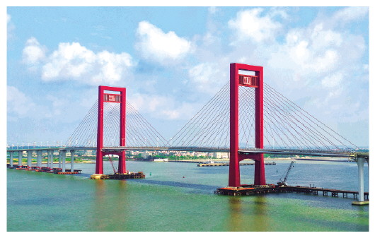 2021年5月4日拍攝的湛江調順跨海大橋(無人機照片)。大橋跨越湛江灣連接湛江市調順島及海東新區,對加快廣東粵西片區經濟發展發揮重要連通作用。新華社發(楊凝攝)