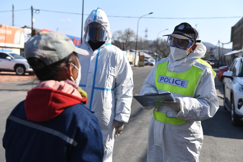 3月20日,龍潭分局榆樹溝派出所民警王瑋波在卡口執勤。(新華社記者 張楠攝)