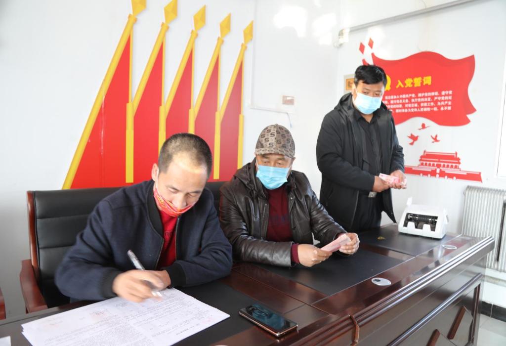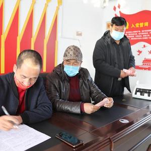 在黑龍江省齊齊哈爾市拜泉縣龍泉鎮群富村村委會會議室,村民們正在簽訂土地托管合同。(受訪者供圖)