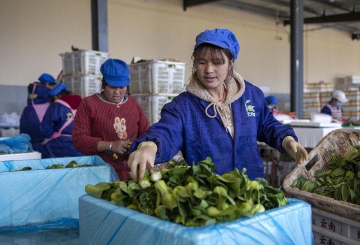 今年32歲的林春熟練地分揀著小青菜。她去年6月辭去昆明建筑工地的活計,回家照顧孩子。“這比搬磚輕松,工資差不多,還能顧家。”林春說,搬遷后經社區干部引薦,就近找到一份蔬菜分揀工作,而像她這樣的搬遷群眾約有千人。