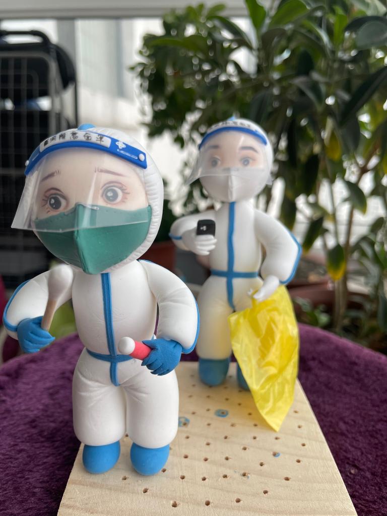 近日,居家隔離的費琳抽出閑暇時間,以入戶做核酸采樣的“大白”為靈感,制作了超萌的黏土人偶,一經曬出便刷爆了朋友圈。