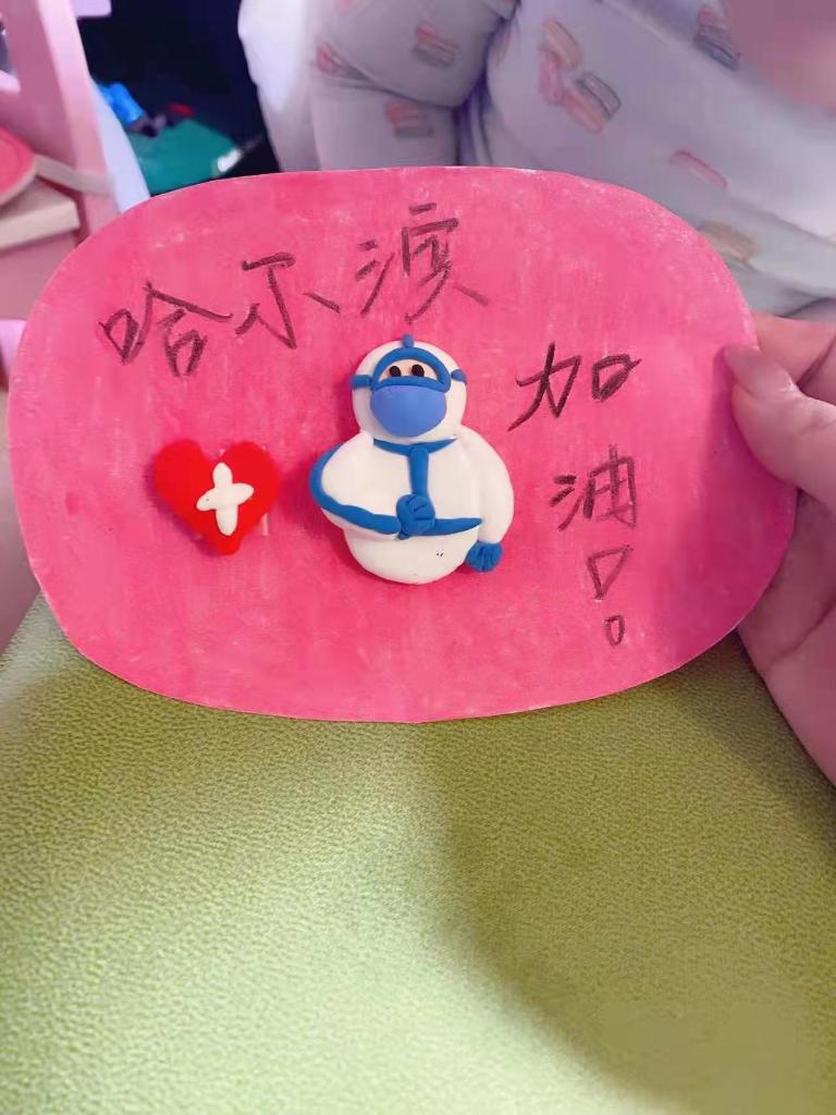 朋友圈里的一句話,配上“抗疫大白”的黏土作品,讓家住哈爾濱市道外區上和城小區的費琳收獲了很多陌生網友的點贊和熱評。
