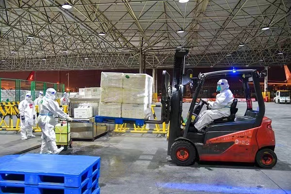 在上海浦東機場貨運區域,7400人封閉作業。(上海機場集團供圖)