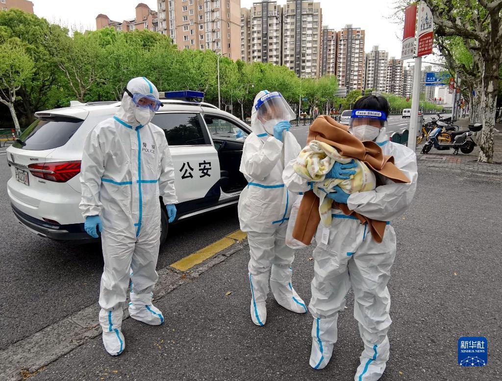 4月16日,上海市公安局經偵總隊增援北蔡派出所民警護送患兒和家屬前往上海兒童醫(yī)學中心進行救治。新華社發(fā)
