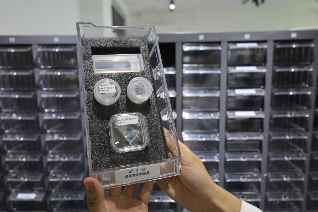 工作人員正在展示一份明成化時期的古陶瓷基因標本。王凱豐攝