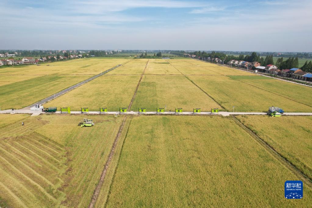 這是湖南省沅江市草尾鎮中聯智慧農業沅江基地的機械化收割現場(2022年7月14日攝)。新華社發(鐘祖彪攝)