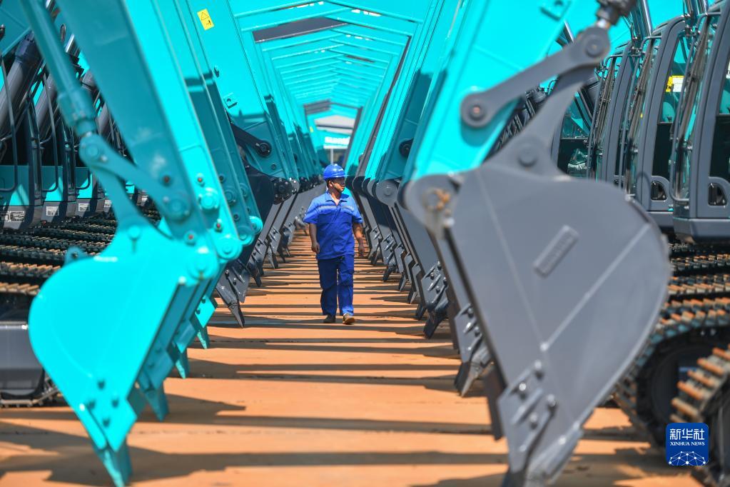 在位于湖南長沙經開區的山河智能裝備股份有限公司,工作人員在檢查機械裝備(2022年7月1日攝)。新華社記者 陳澤國 攝