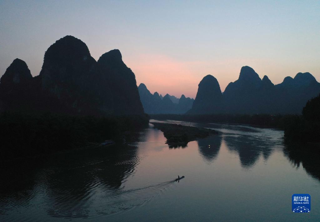 這是在廣西陽朔縣興坪鎮拍攝的漓江風光(2020年5月19日攝,無人機照片)。新華社記者 周華 攝