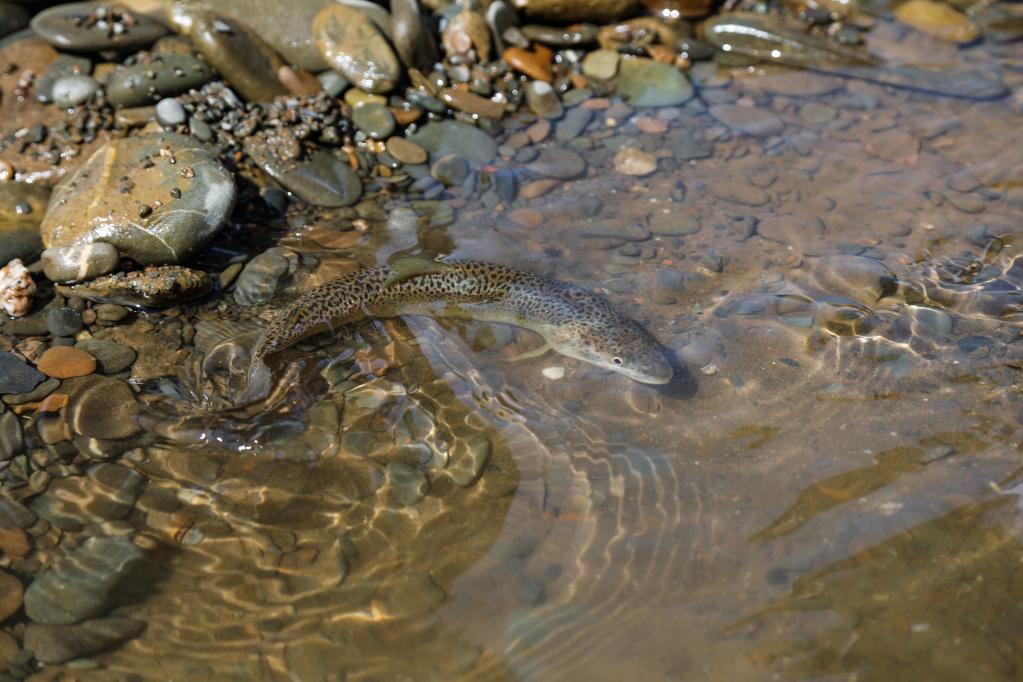 新華社西寧8月10日電(記者張龍)游弋在瑪可河中,幾尾川陜哲羅鮭還未能完全適應它們的“新家”,在淺水洼中靜待了幾分鐘,尾巴一擺,游向深水區。