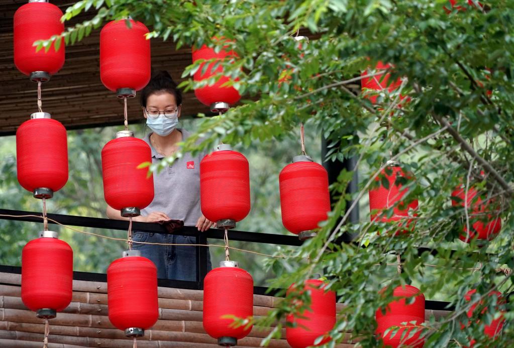 7月13日,工作人員在“洛陽三彩陶藝村”打掃衛生。新華社記者 李安 攝