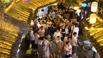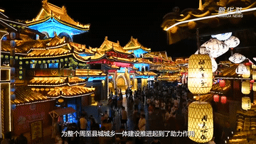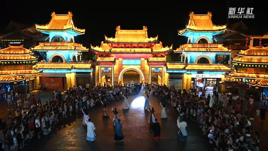 夜幕降臨,位于陜西省西安市周至縣的水街生態旅游特色小鎮人潮涌動。特色小吃、傳統手工藝、非遺文化展演吸引游客駐足。