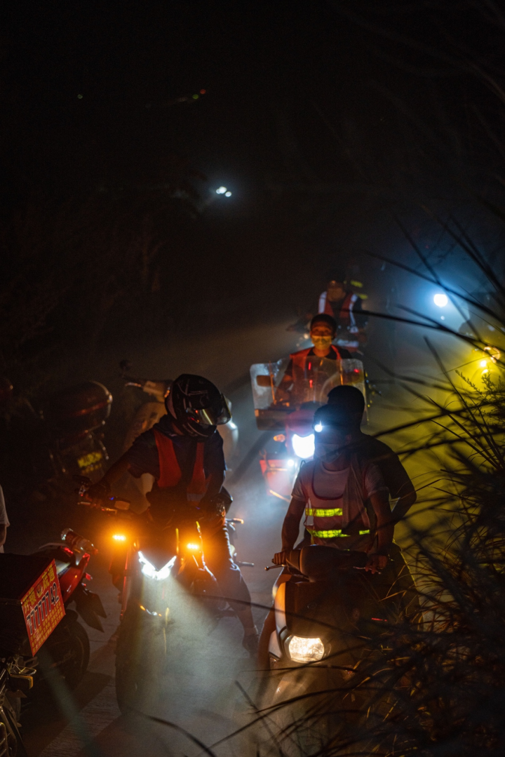他們沒想到,在他們上山接人下山的同時,越來越多新來的志愿者此時跟在他們身后,一起上山。這些摩托車騎手們,在這個夜晚,猶如一條發光的“小龍”,快速地“游”進了大山深處。