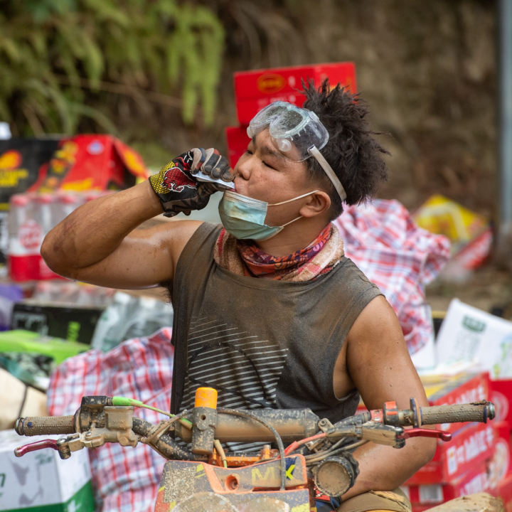 越野摩托拼盡全力也只能到達“隔離帶”下端,當我滿身泥漿地下車后,才發現現場的每一個人都是一身泥濘,這里的每一名救援人員都摔過,但沒人抱怨,也沒時間耽擱。身后那巨大的油門聲音再次響起,騎手一個瀟灑的原地掉頭,瞬間消失在濺起的塵土中。