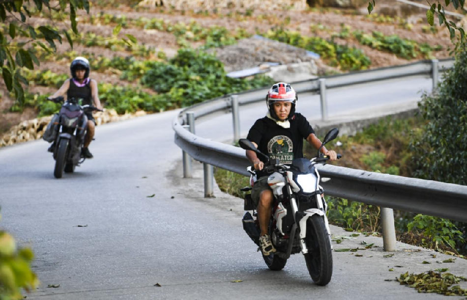 8月26日,在重慶北碚區歇馬街道,“摩托大軍”志愿者運送物資和人員上山。