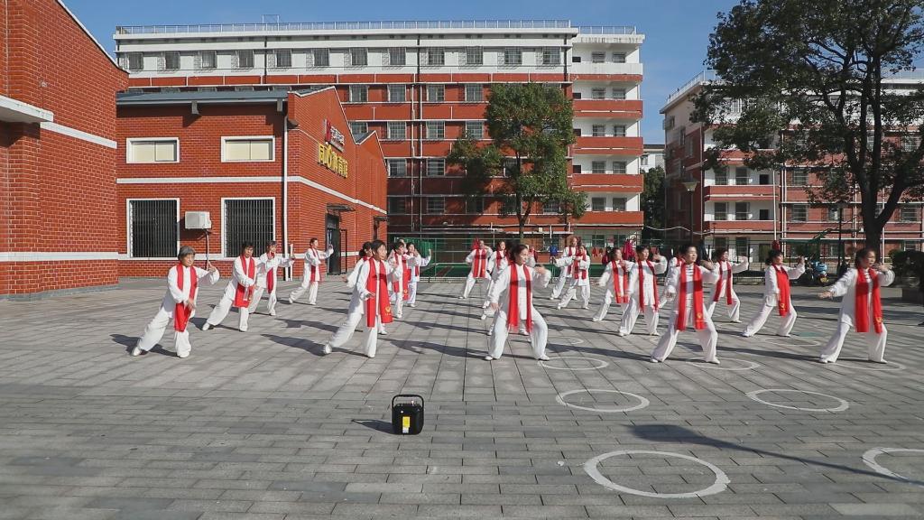 湖南省長沙市望城區(qū)高塘嶺街道中南社區(qū)居民在活動廣場上打太極拳。(受訪者供圖)