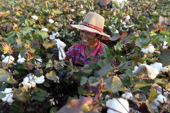 金秋時節(jié),產(chǎn)棉大縣山東省濱州市無棣縣西小王鎮(zhèn)6萬畝鹽堿地棉花進(jìn)入采收季。9月28日,山東省濱州市無棣縣西小王鎮(zhèn)棉農(nóng)在采收新棉。新華社記者 范長國 攝