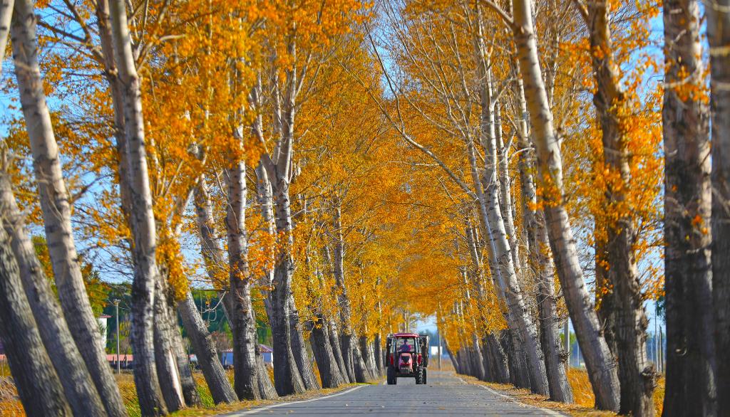 10月18日,在遼寧沈陽市沈北新區(qū)興隆臺(tái)鎮(zhèn)青年農(nóng)場(chǎng),車輛在運(yùn)送剛收割的水稻。 新華社記者 楊青 攝