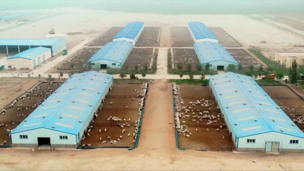 沙漠干旱缺水,蒸發量大、保水能力差,種植牧草并非易事。如今,依托科技賦能,當地對種植飼草的沙地進行改良,采用節水澆灌設備,對噴水量、噴水時間等進行精準控制。截至2021年底,當地飼草種植突破10萬畝,牛羊存欄73.71萬頭(只)。