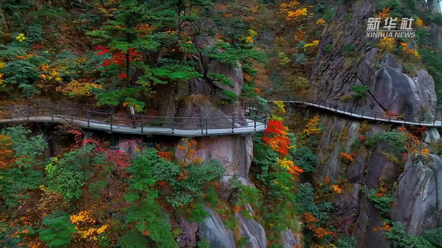 十月末,位于安徽省池州市的九華山風景區,秋意正濃,秋色蔓延,如同一幅濃墨重彩的油畫。九華山高海拔的地形條件和多樣的植物群落組合,形成了這樣的自然風光。