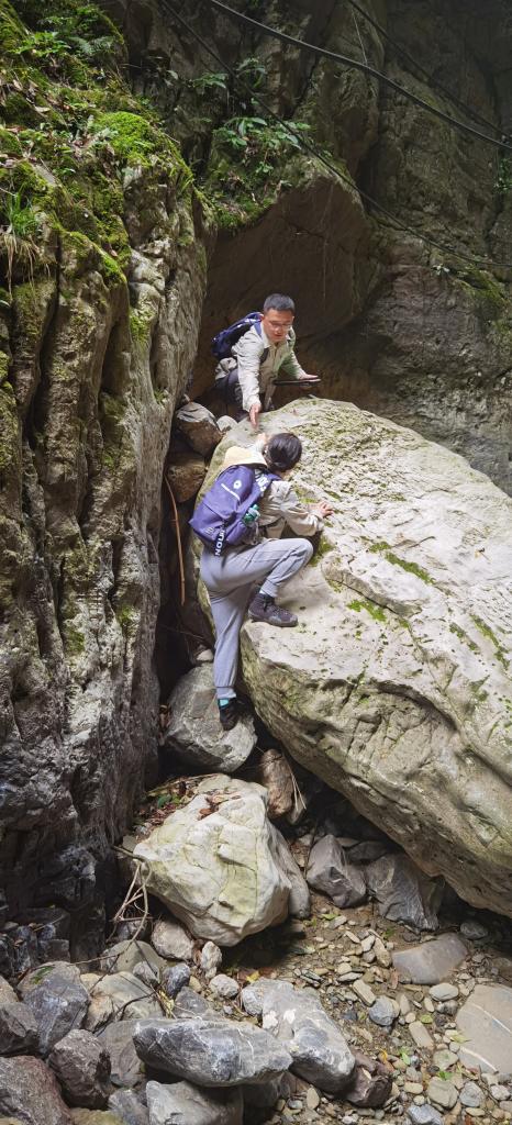 黃吉蘭和同事正在進行野外調查。(受訪者供圖)