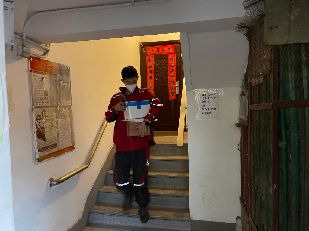 一步兩階梯,上樓如平地,這是拿著幾件小件快遞上樓的欒玉帥;一口氣上六樓,中間不停歇,這是手拿肩抗米面油的欒玉帥。追了小哥一路,被小哥甩了一路,記者正懊惱時,一位街坊的“玩笑話”讓記者印象深刻:“他在樓下按完門禁我住三樓就能開門,這時他剛好到門口。”