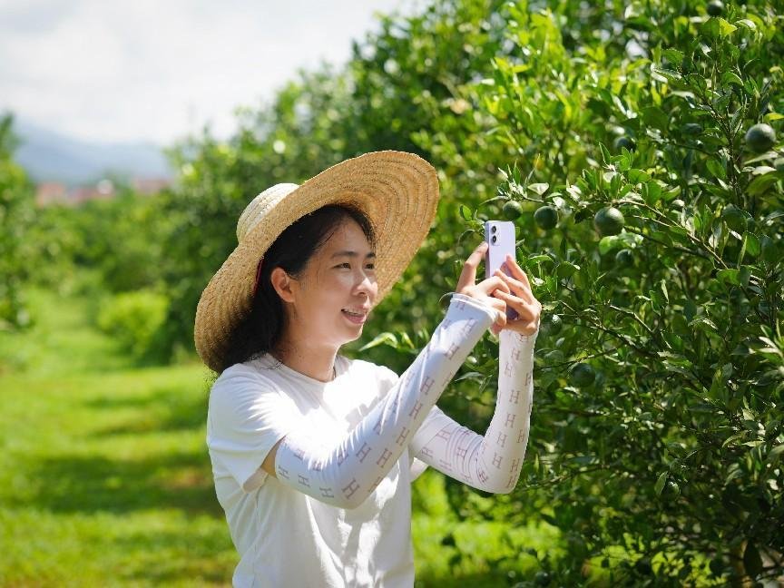 陳慧在檢查貢柑的生產情況。張羲輪攝