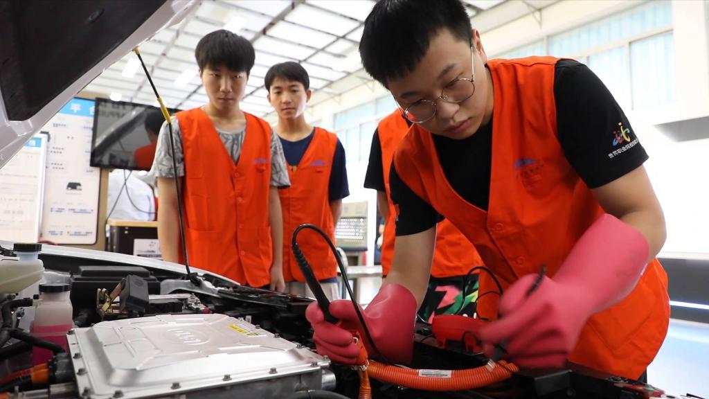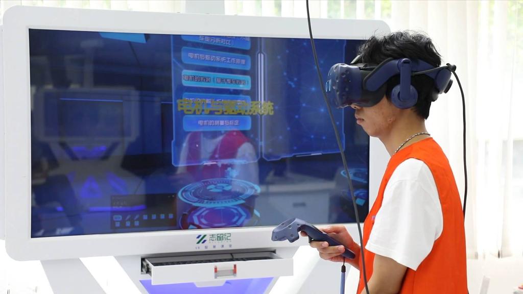 在深圳職業技術學院的汽車與交通學院實訓室,大三學生宋明亮在與同學們學習汽車檢測與維修原理。在這所高職院校,從5G無人駕駛汽車,到地鐵駕駛艙、智能機器人,甚至企業沒有面市的最新科研成果,都成為該校的教學樣本。